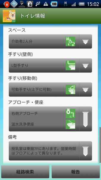 Check a Toilet for Androidは多機能トイレを探すためのアプリなので、多機能でない一般の公衆トイレは登録されていません。あらゆる公衆トイレを探したい場合は、トイレアプリやみんなでつくるトイレマップなどの一般的なトイレ検索アプリが便利です。ただし、各トイレの詳細情報はCheck a Toilet for Androidが最も充実しています。Check a Toilet for Androidは多機能トイレを探したり、知っている多機能トイレを登録できるユーザー投稿型の地図アプリです。ユーザーの協力によって、さまざまな要望を抱えた人たちがより気軽に外出を楽しめるようになるかもしれません。